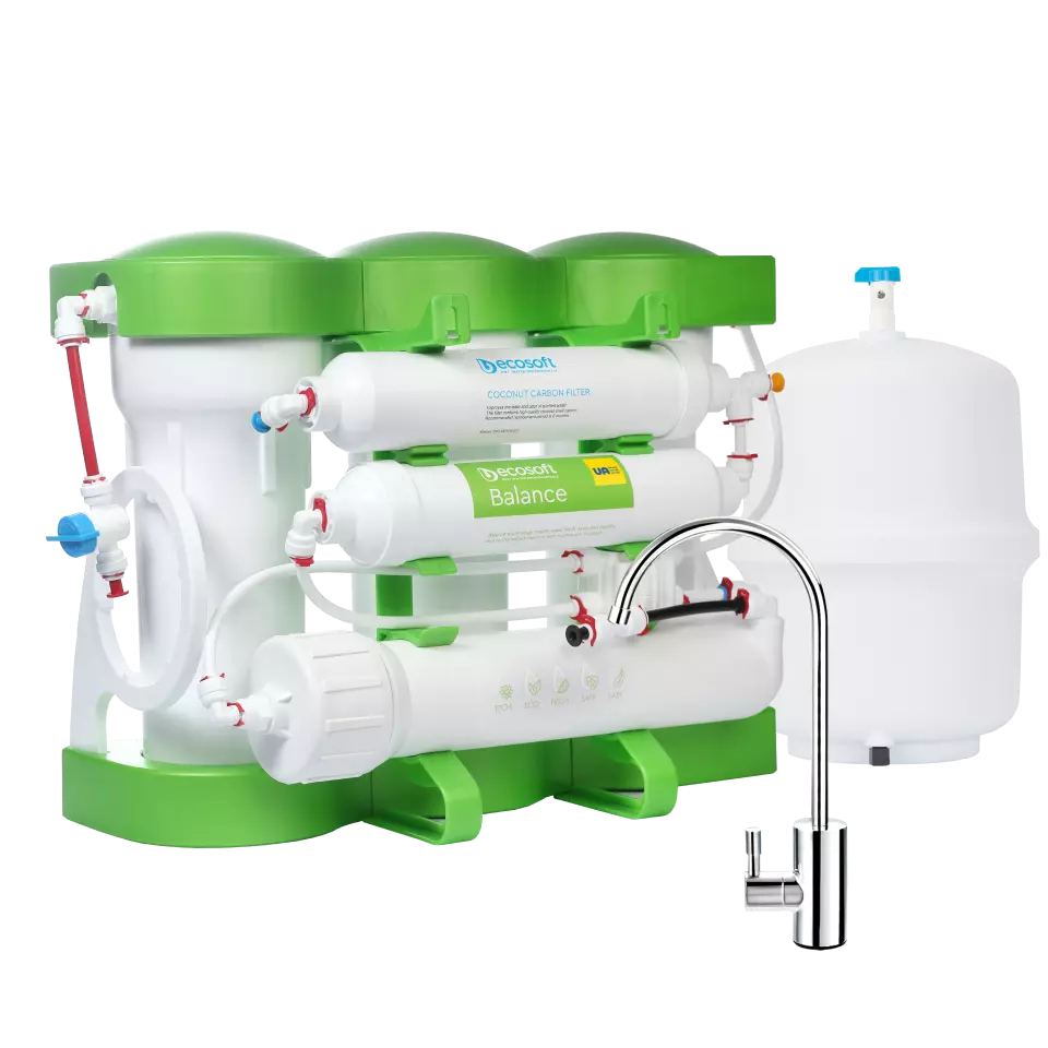 Система обратного осмоса Ecosoft PURE Balance обеспечивает высочайший уровень очистки воды с помощью многоступенчатой фильтрации. Каждый этап играет важную роль в удалении загрязнений и обогащении воды для безопасного и приятного употребления. Вот подробное описание того, как это работает: